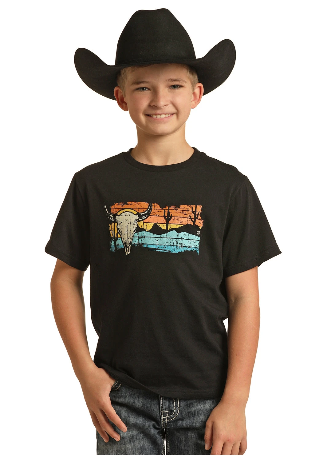 Black Short Sleeve T-Shirt with Skull and Desert Screen Print.