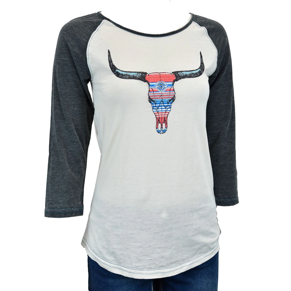 White and Grey T-Shirt with Serape Skull.