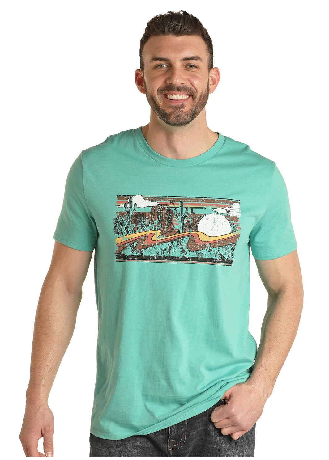 Turquoise Short Sleeve Desert Screen Print T-Shirt.
