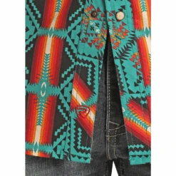 Rock & Roll® Men’s Teal Aztec Poplin Print Snap Shirt RRMSOSRZ15-81