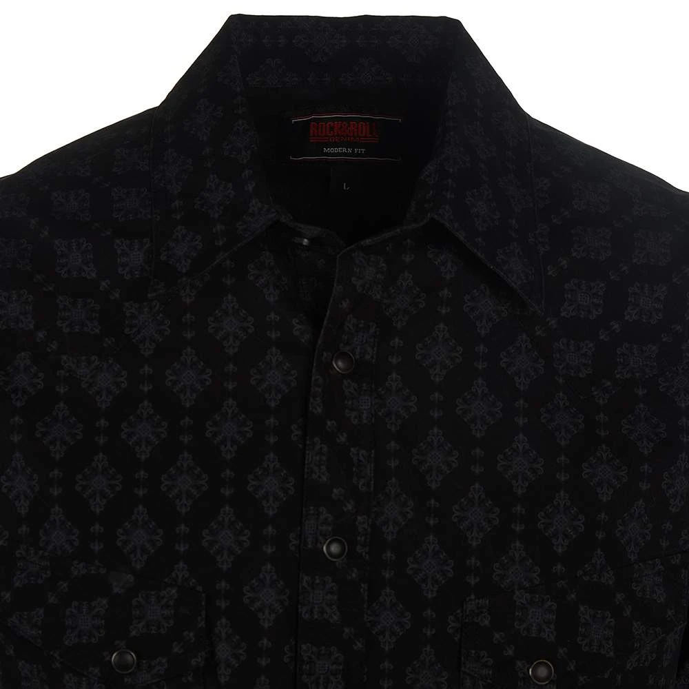 Ride in style in our black medalion print shirt from Rock N Roll Cowboy!